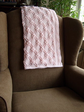 Gauge 22 sts, 32 rows = 4” in St st. (Gauge not crucial, larger needles and thicker yarn will make a larger blanket.)