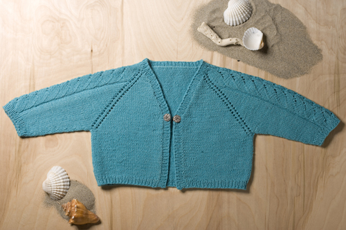 It is knit from the top down and coordinates beautifully with the matching Surfer Girl Cami. The garment is perfect for lightweight layering and can be worn from early spring through chilly autumn weather. This quick and easy seamless knitting project requires no sewing!